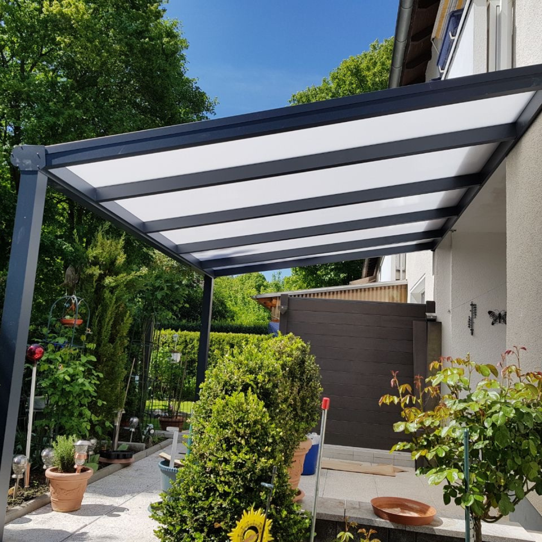 Unsere Überdachungen bestehen aus hochwertigen Materialien, sind rostfrei, pflegeleicht und für Jahrzehnte gemacht.